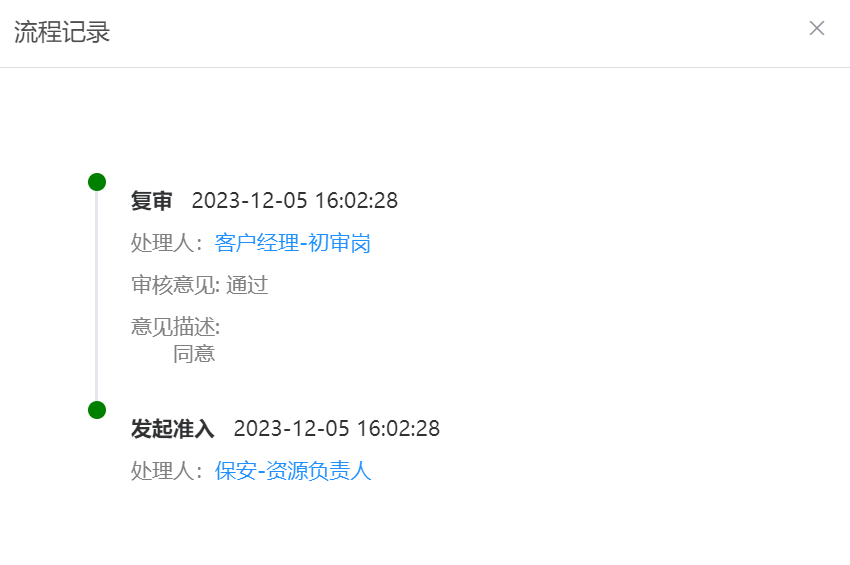 为便于发起申请的用户清楚了解订单审批流处于哪个环节,提供以流程记录的方式查看该订单当前处于哪个审批环节。