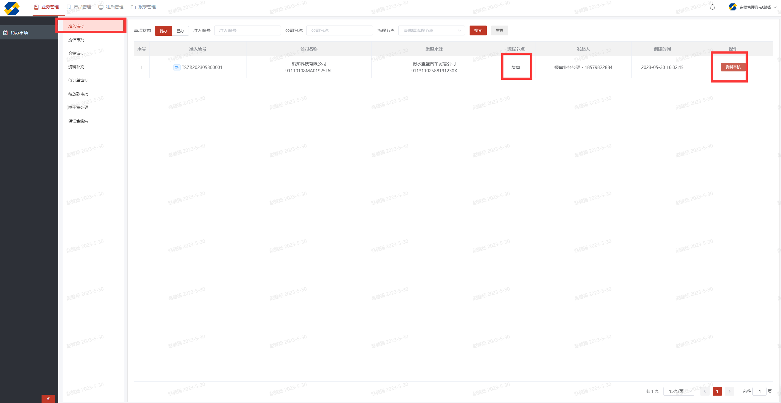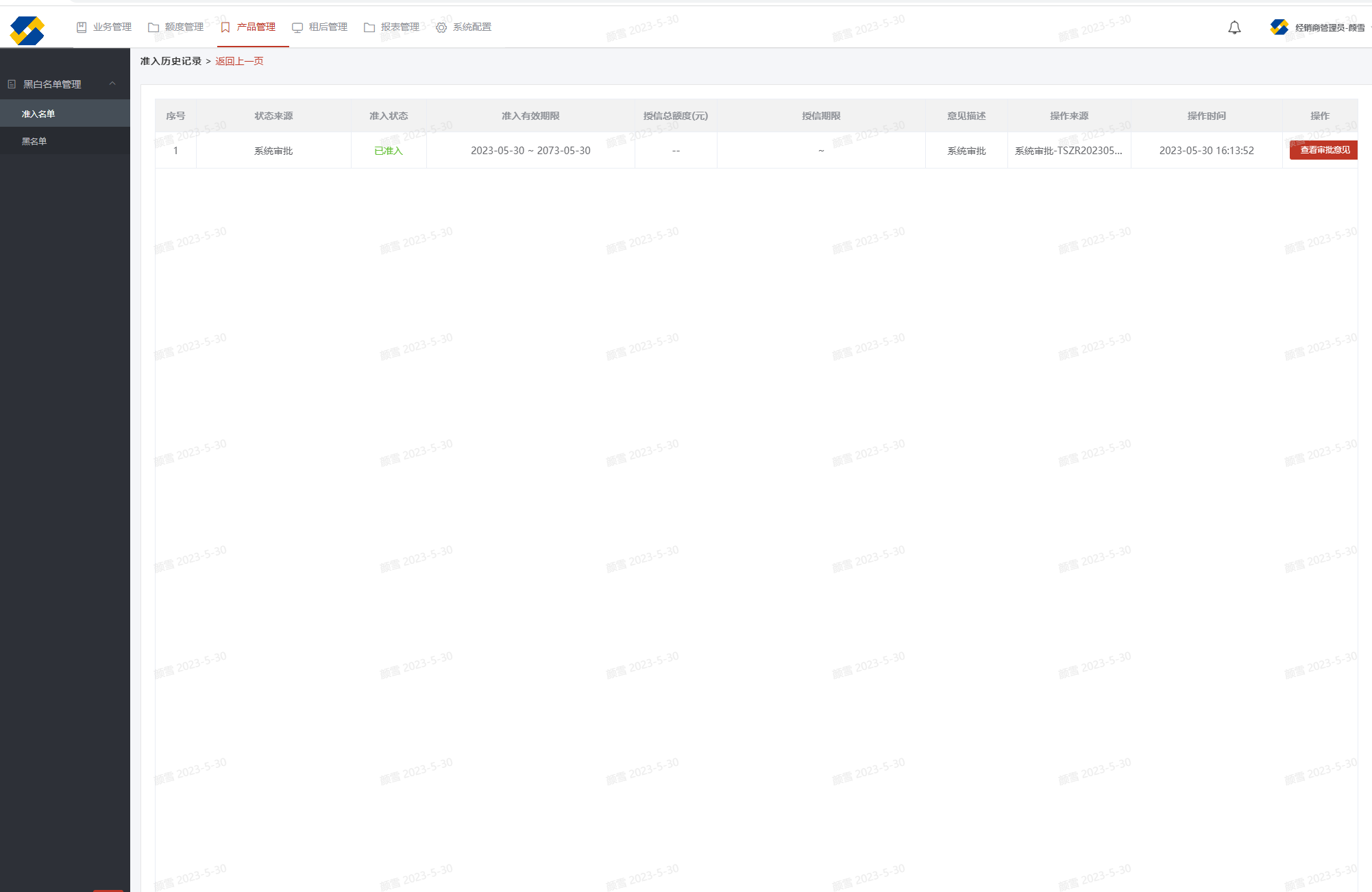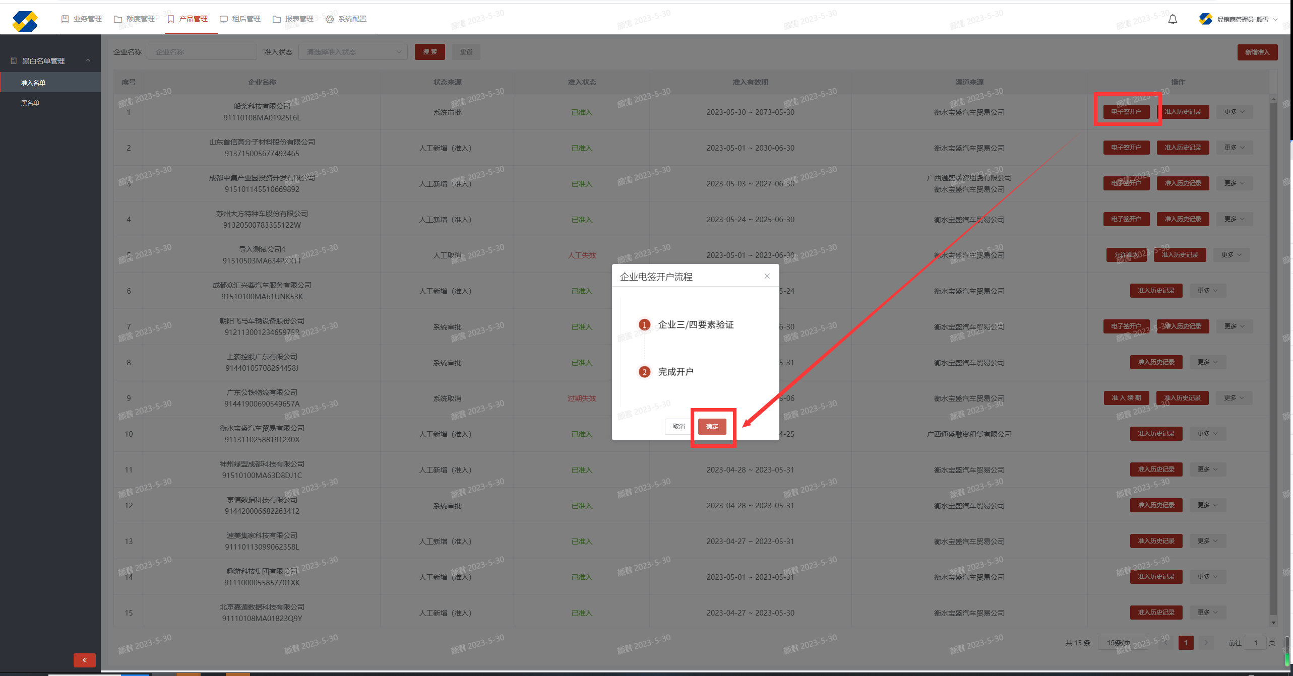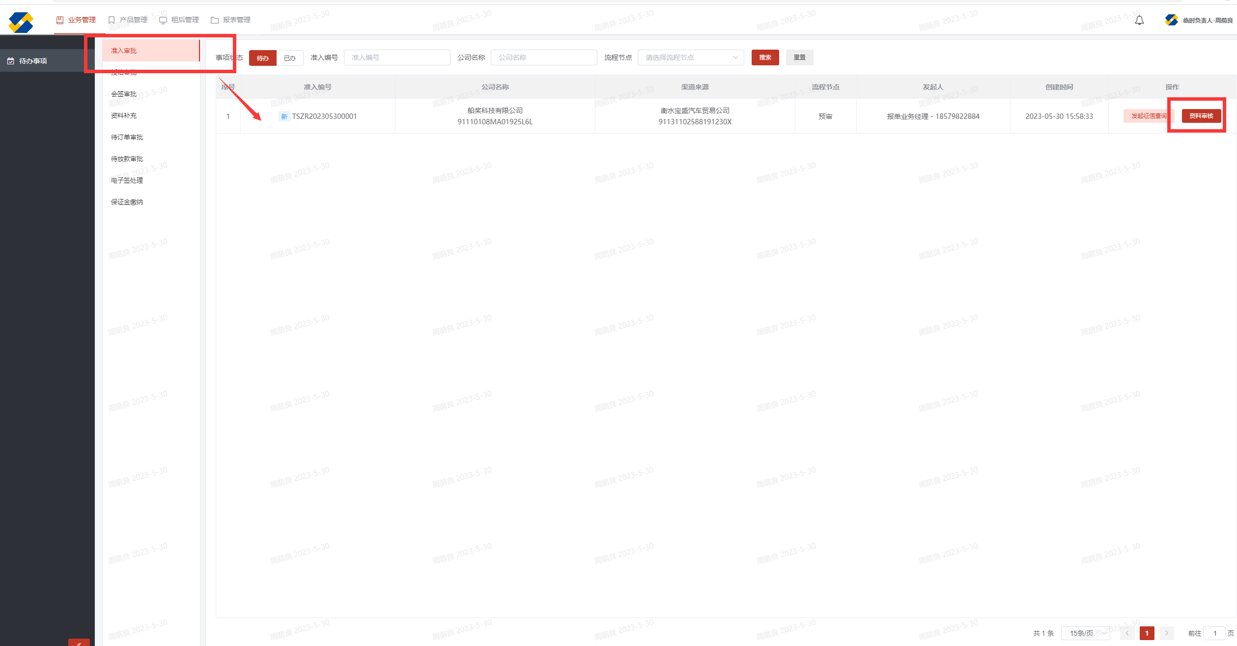 刚刚准入成功的企业已在准入名单中显示,可以看到他的准入状态、准入期限以及渠道来源。