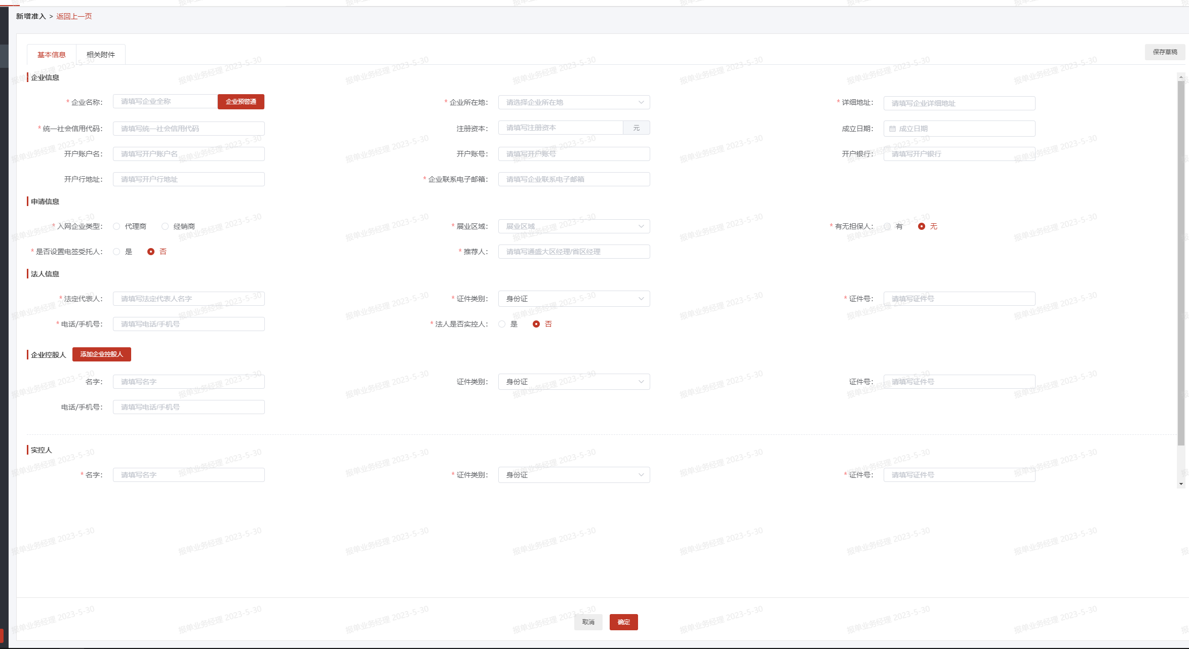 法人信息、企业控股人信息、实控人信息根据企业的实际情况,对应填写,由于存在一个企业的企业控股人或实控人会存在多个,则提供根据实际情况自定义添加相关信息;