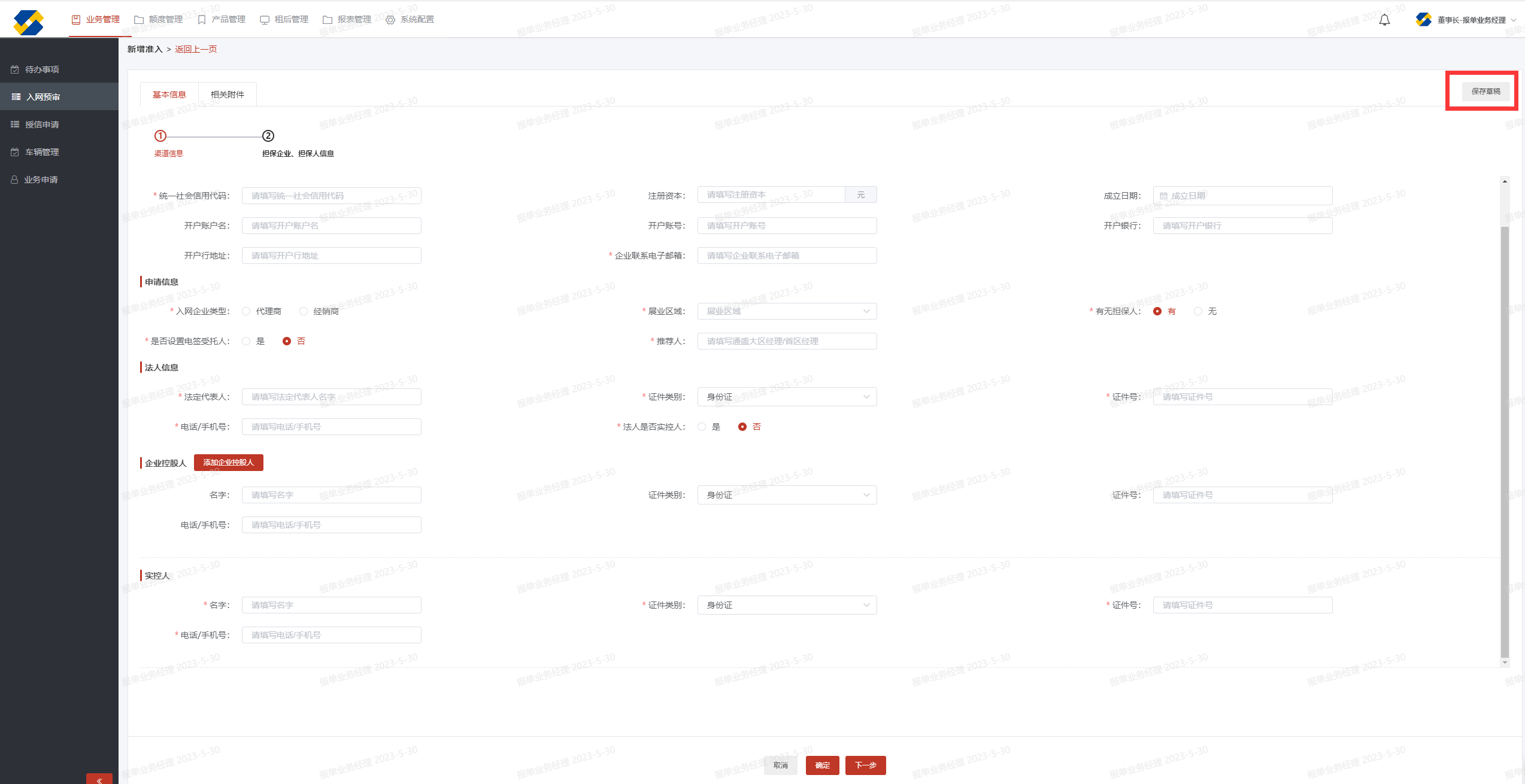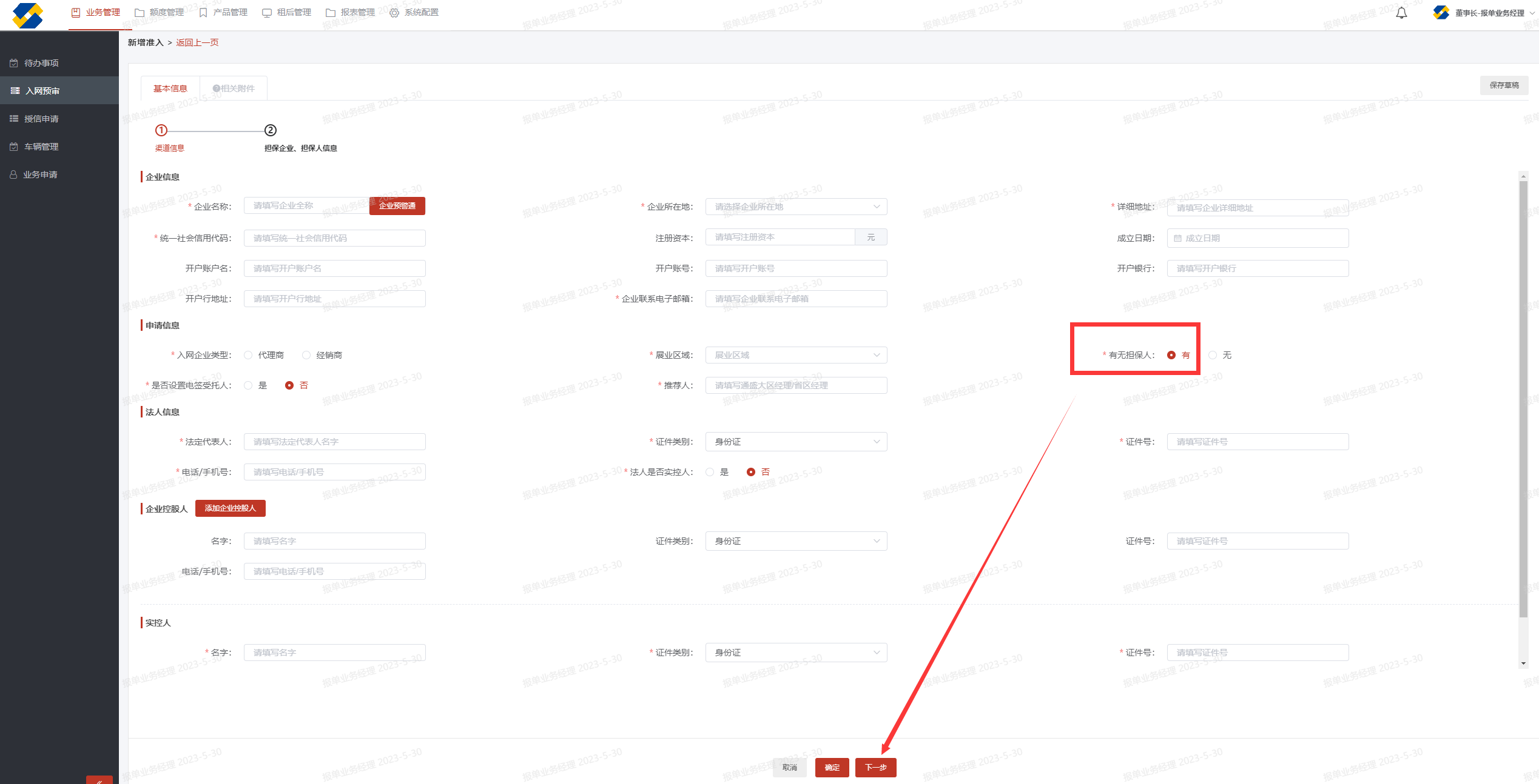 2、已入网预审的企业为他下方的入网企业做申请,此时申请入网企业的资方为提交申请人账号所属企业;