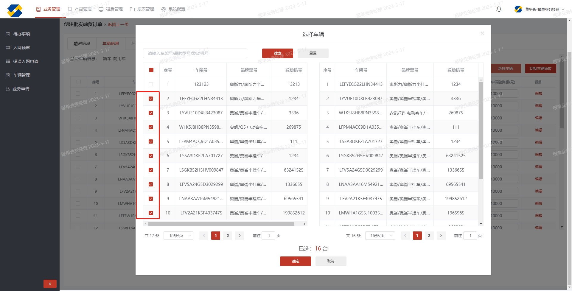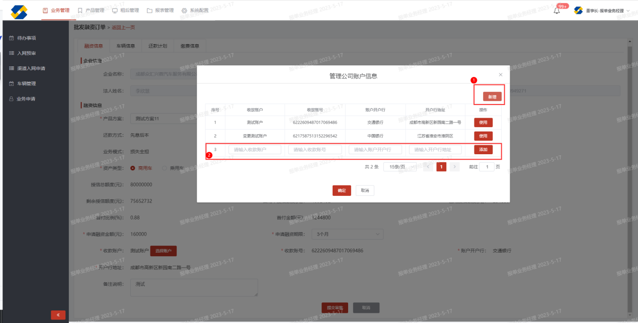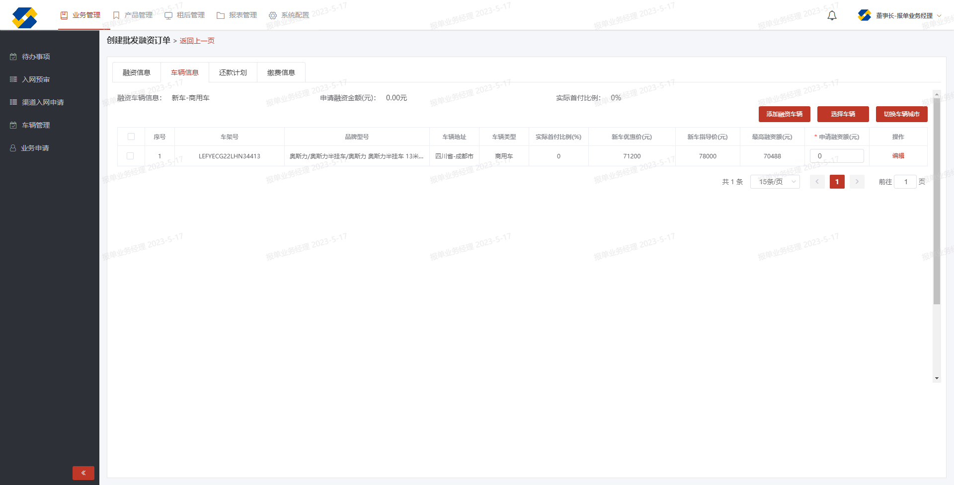 ⑤申请融资金融,是添加的所有车辆的申请融资额的总和,添加车辆后自动显示