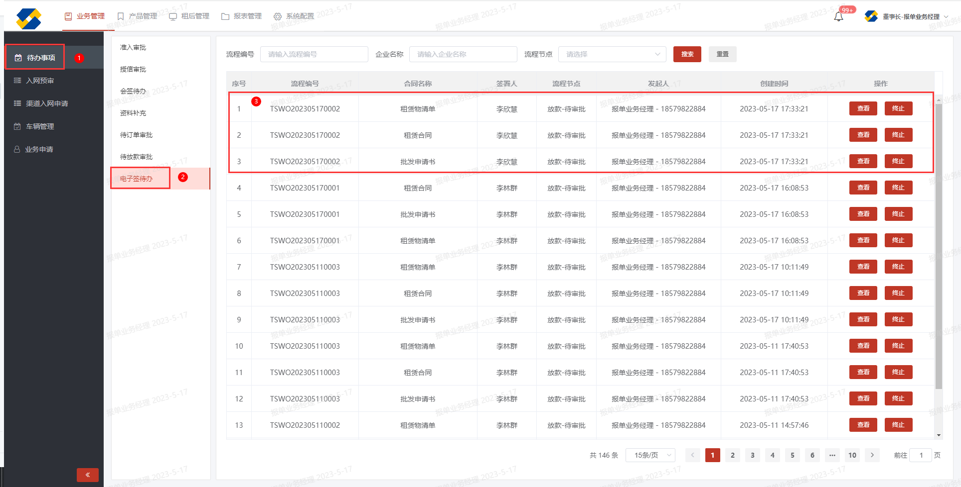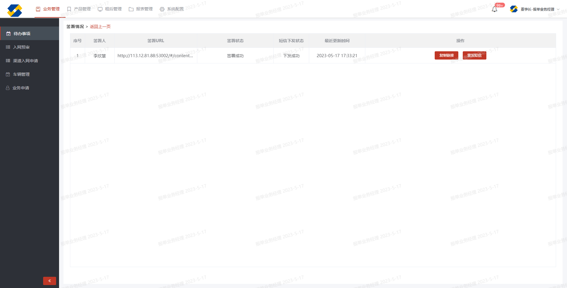 ,则给该企业的法人生成电子签,发送到法人手机上,同时也会生成待办在电子签待办中。