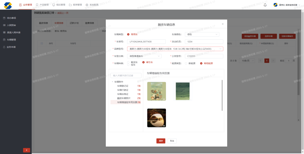 ③选择资产类型和车辆性质,由添加的融资车辆信息的类型决定