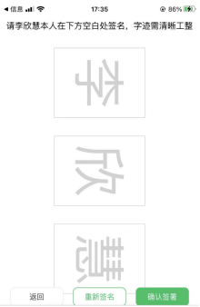6、签字完成后,点击“确认签署”,则会给手机号发送验证码