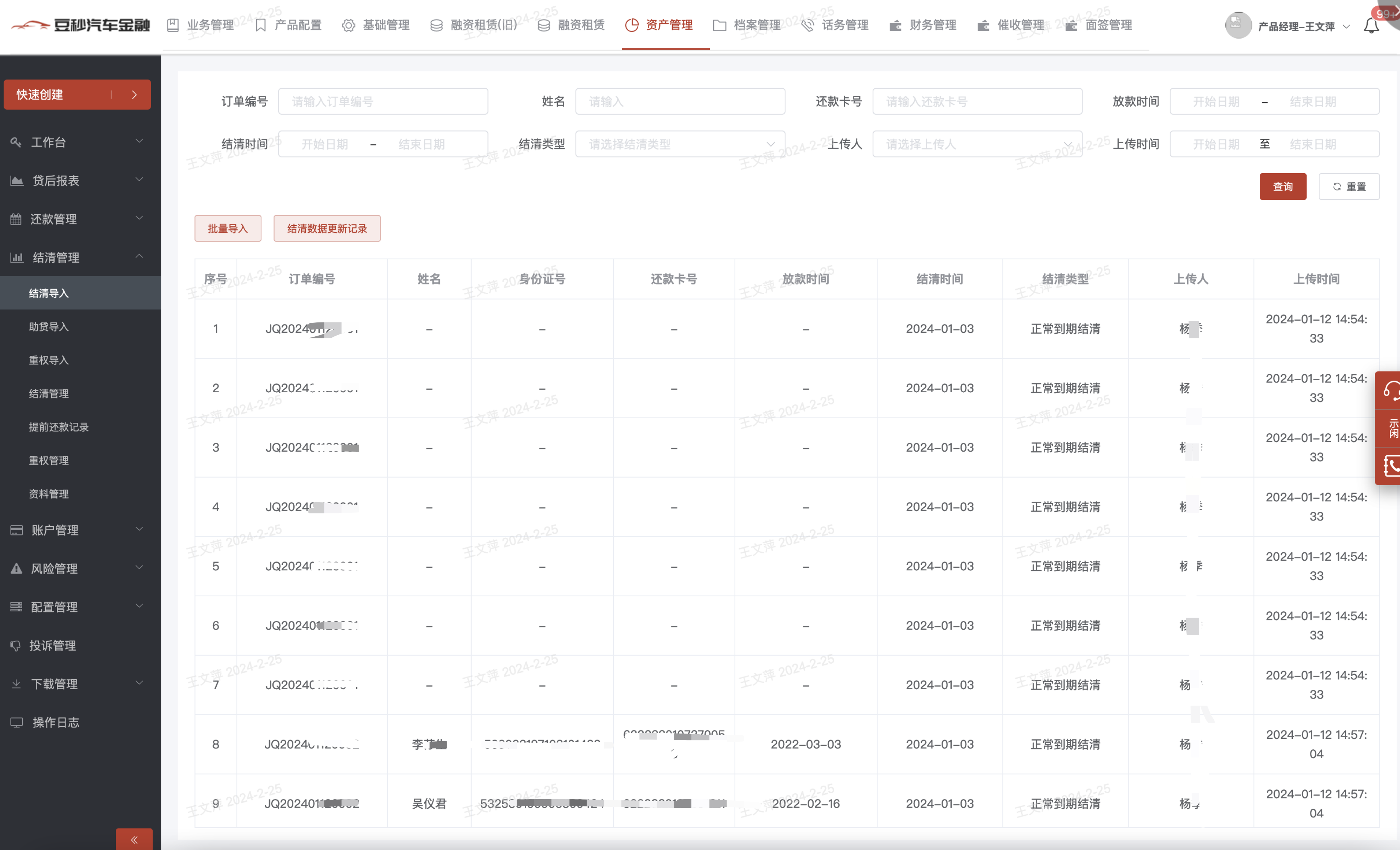 1、模块说明:贷后产生结清的订单可以在此导入查询;
