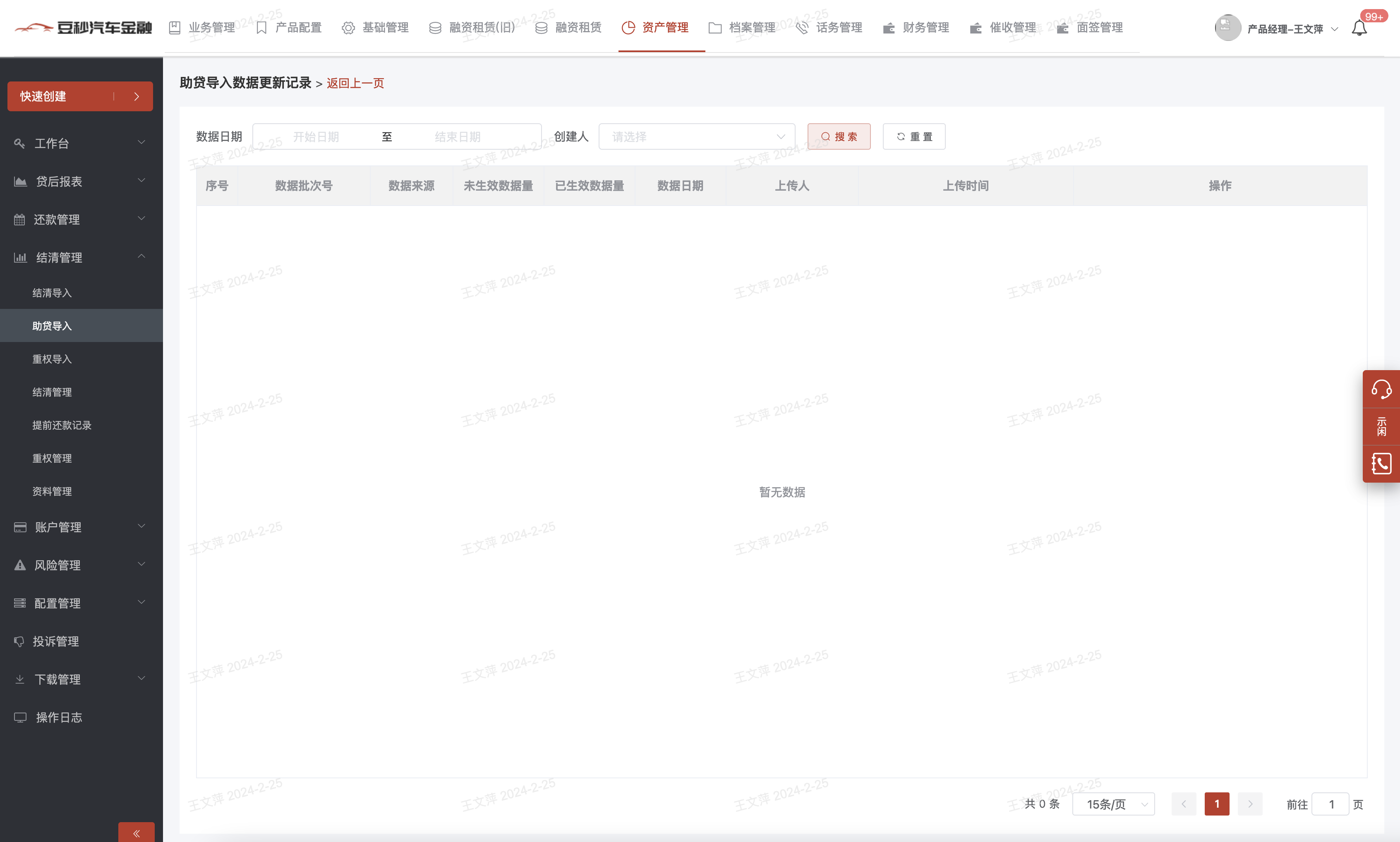 a)模块说明:展示每次助贷导入的记录;