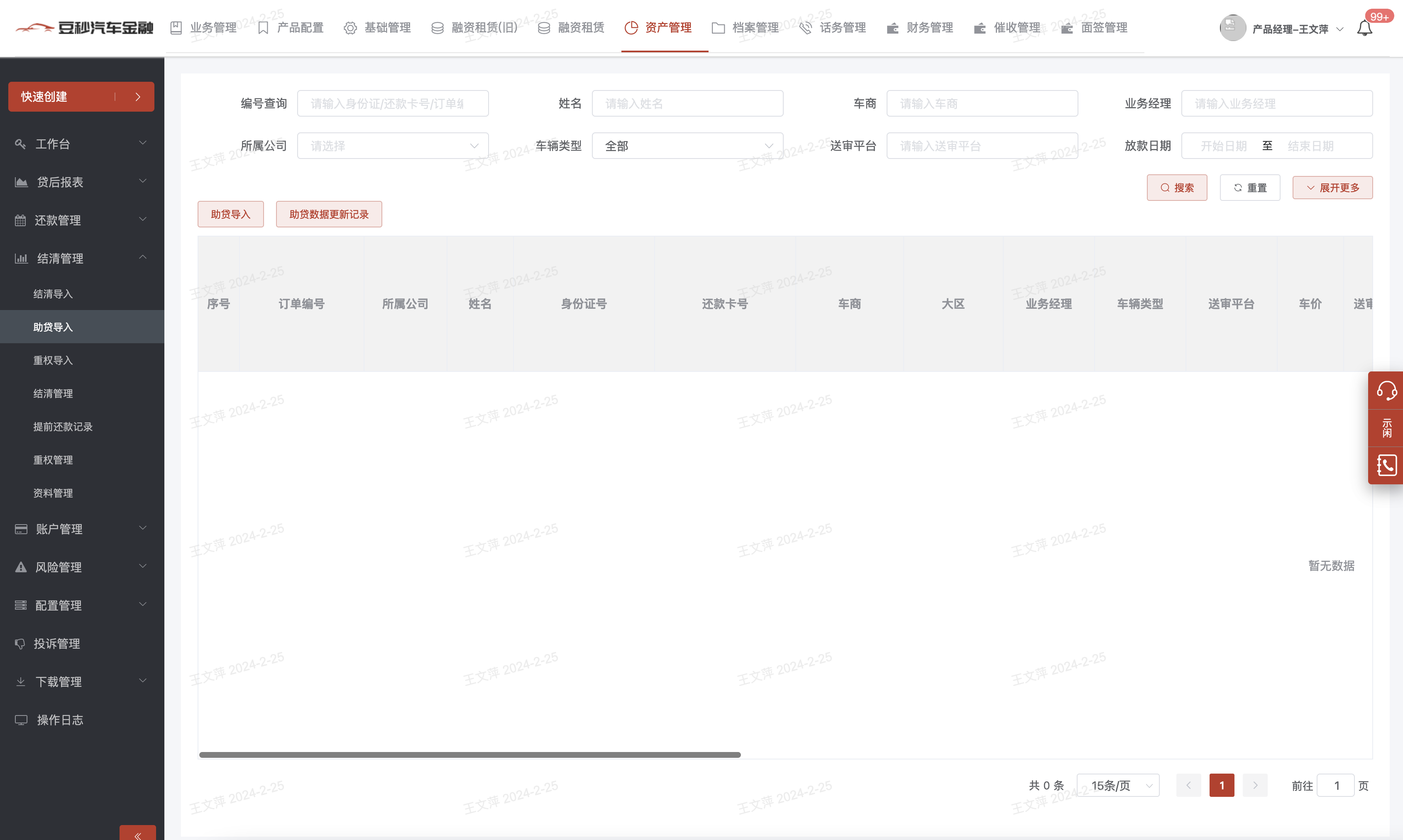 1、模块说明:贷后产生助贷的订单可以在此导入查询,该模块主要用户报表取数;