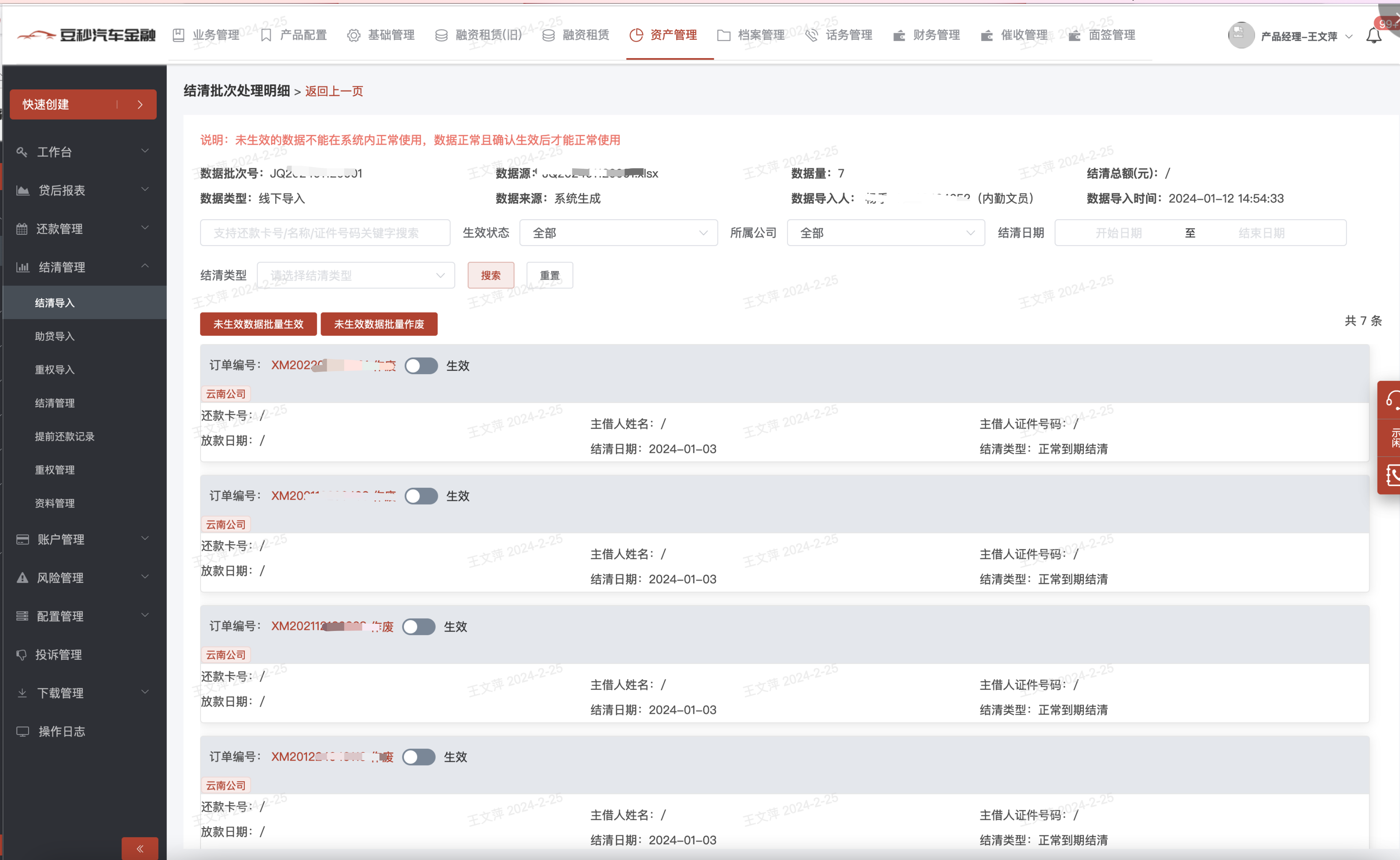ii.支持批量、单条生效作废结清数据;