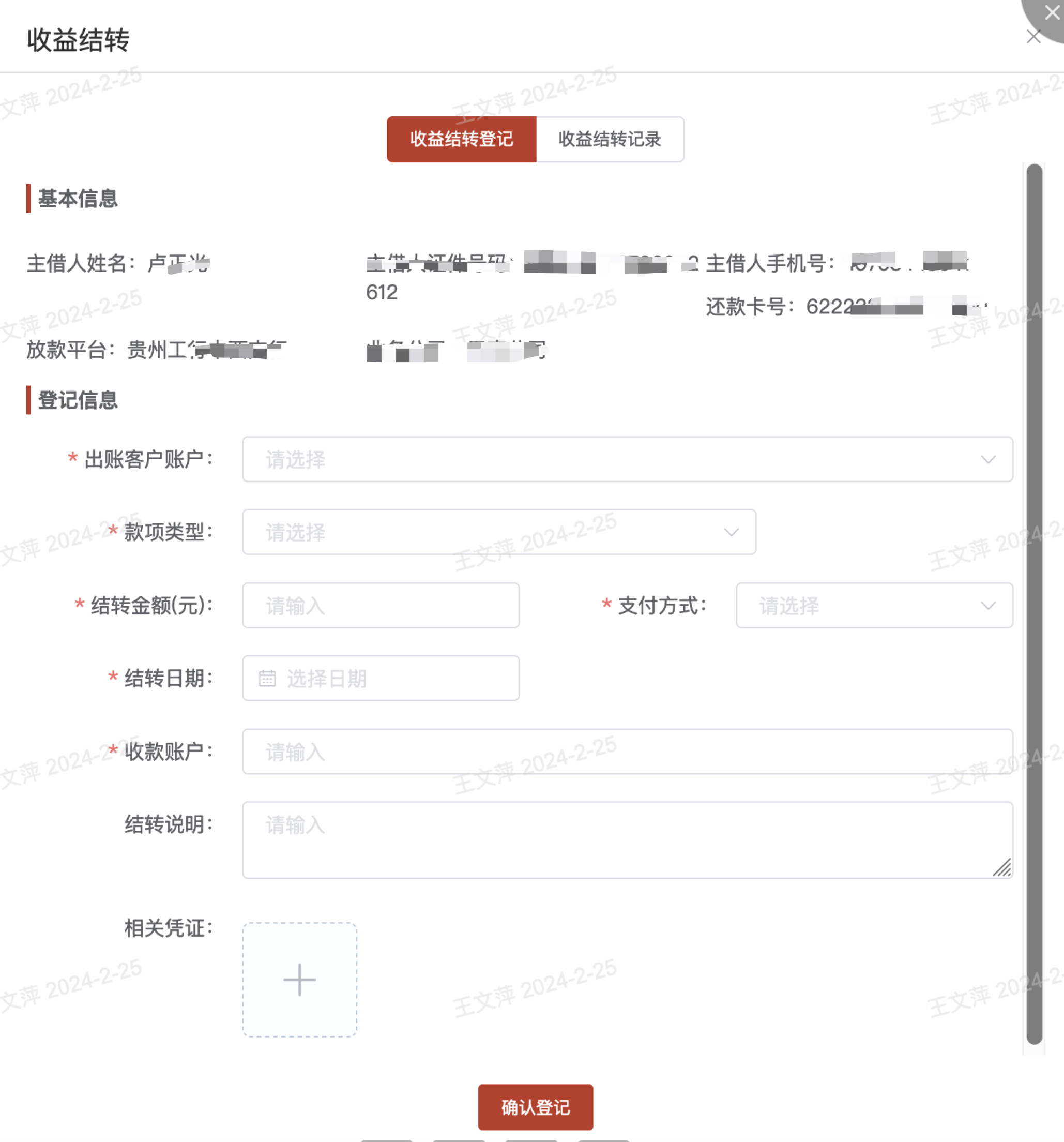 ii.收益结转:支持手工收益结转登记与查询收益结转记录;