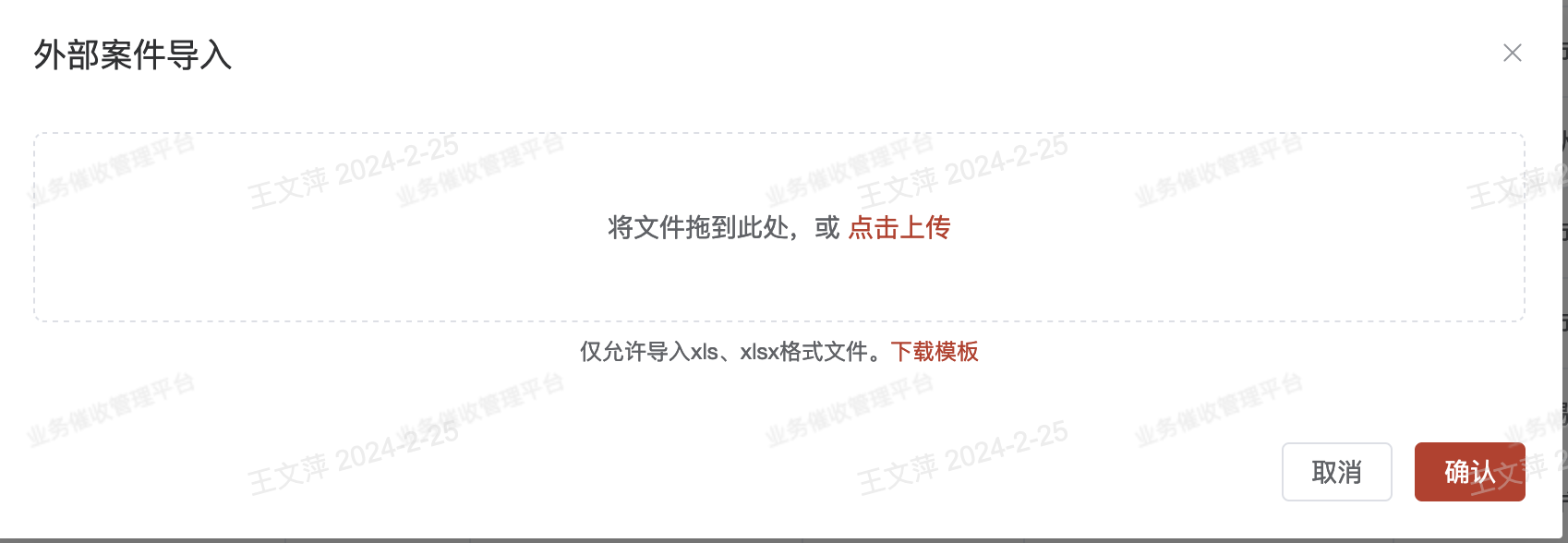 c)外部案件导入:针对外部公司委托我方催收的案件导入模版;