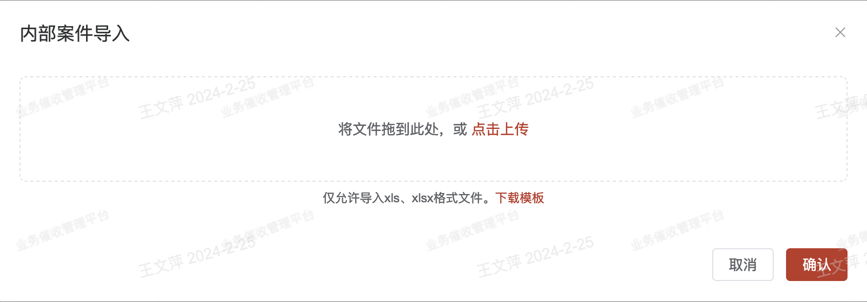 b)内部案件导入:针对豆秒数科公司内部的案件导入模版;