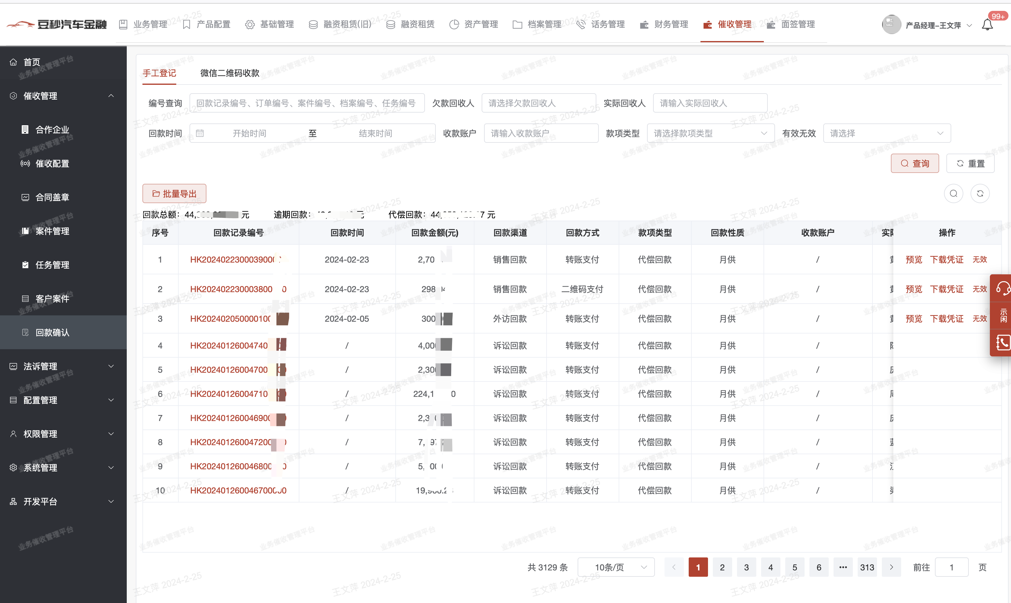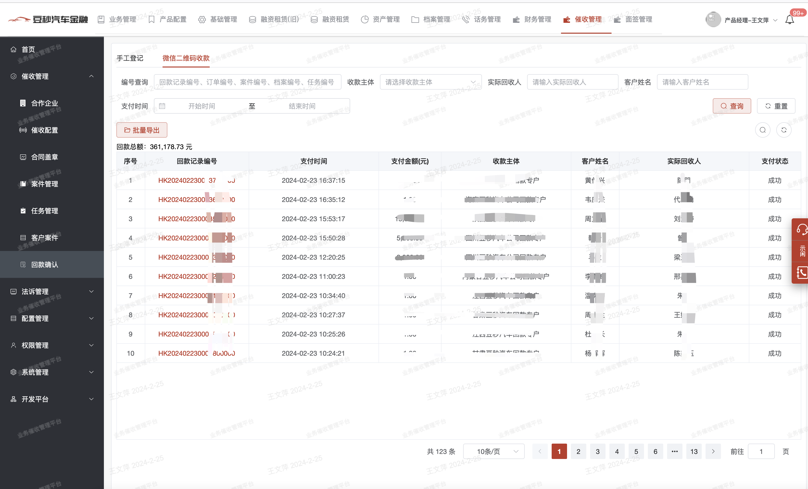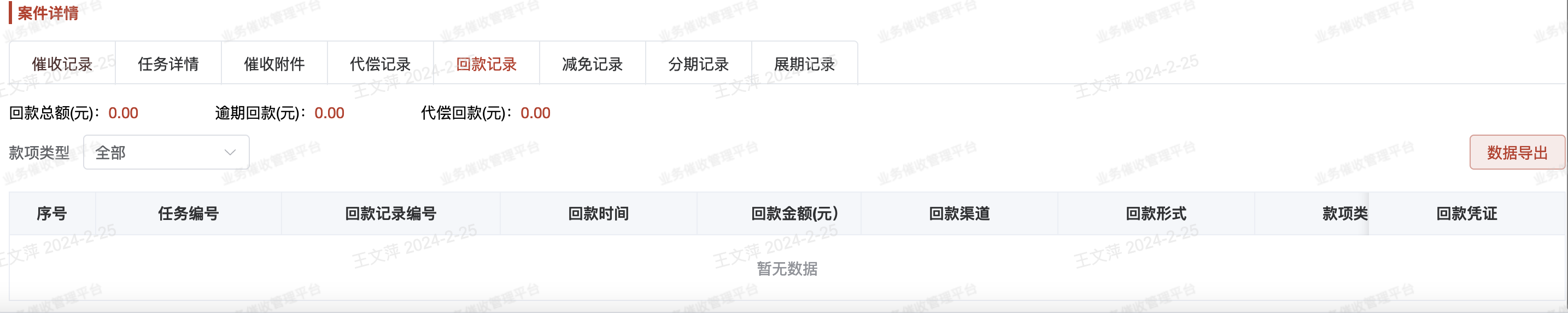 v.回款记录:催收系统的手工登记、二维码回款记录可在此处查询;