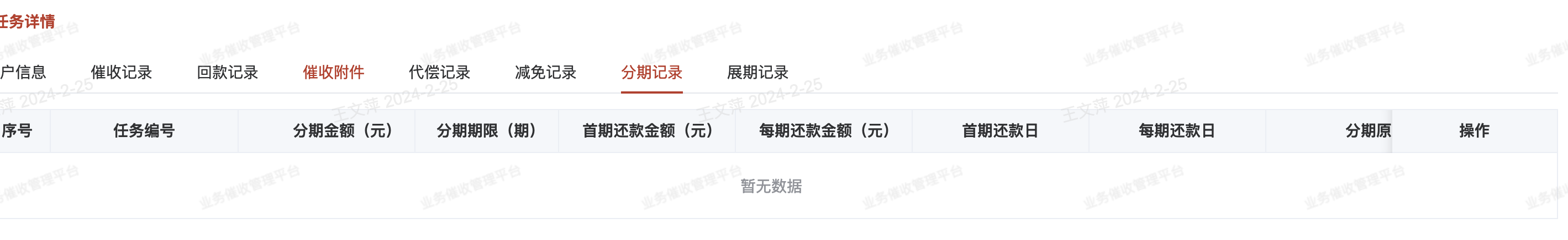 vii.分期记录:该案件关联的任务分期记录可在此处进行查询;