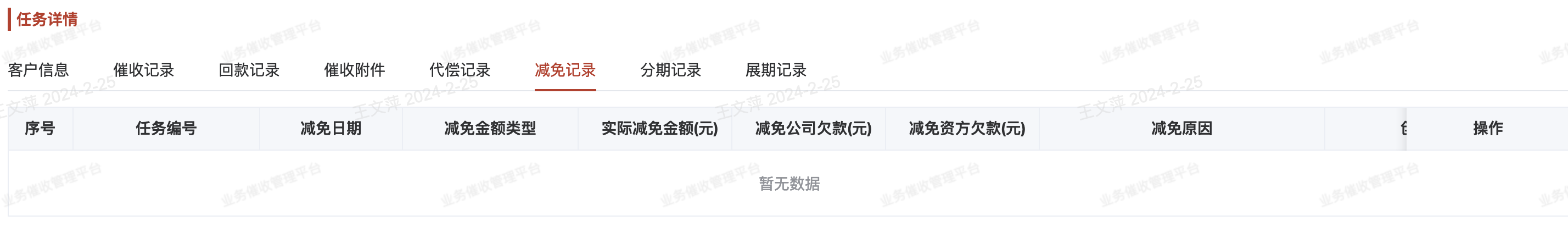 vi.减免记录:该案件关联的任务减免记录可在此处进行查询;