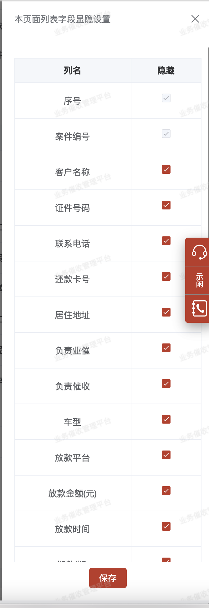 a)显隐列:点击设置列表展示和隐藏的字段;