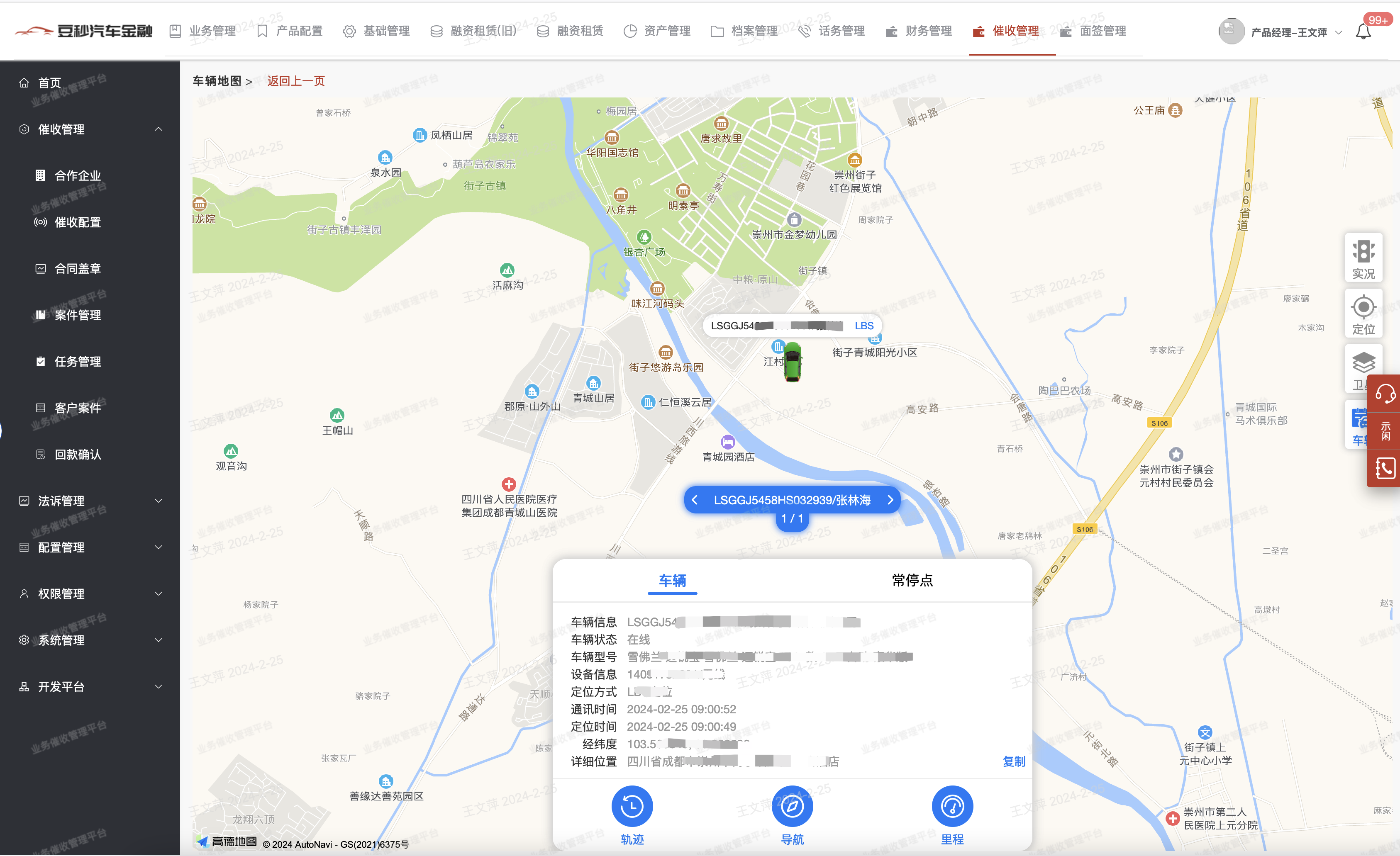 h)车架号:点击可查看车辆在地图上的位置与车辆常停点;