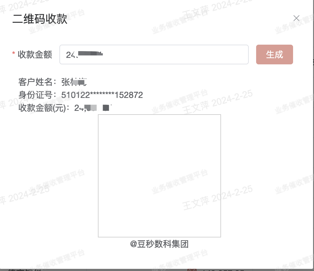 ii.针对二维码收款的订单会自动在资产管理、催收管理同步生成回款记录,无需重复登记。其中融租业务不支持生成二维码收款;