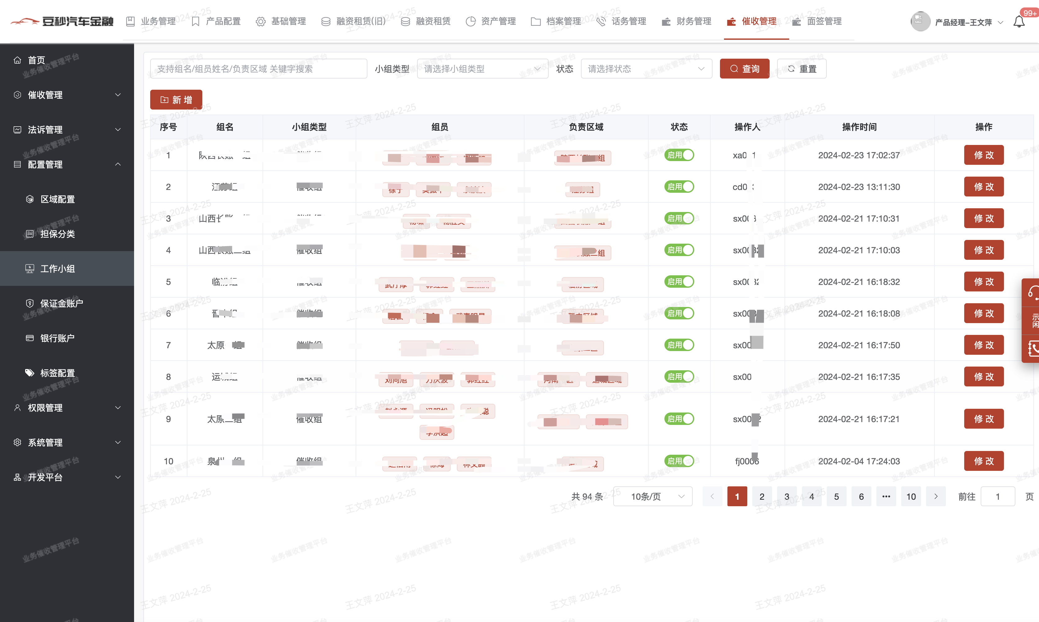 a)模块说明:根据业务公司实际情况创建催收小组;