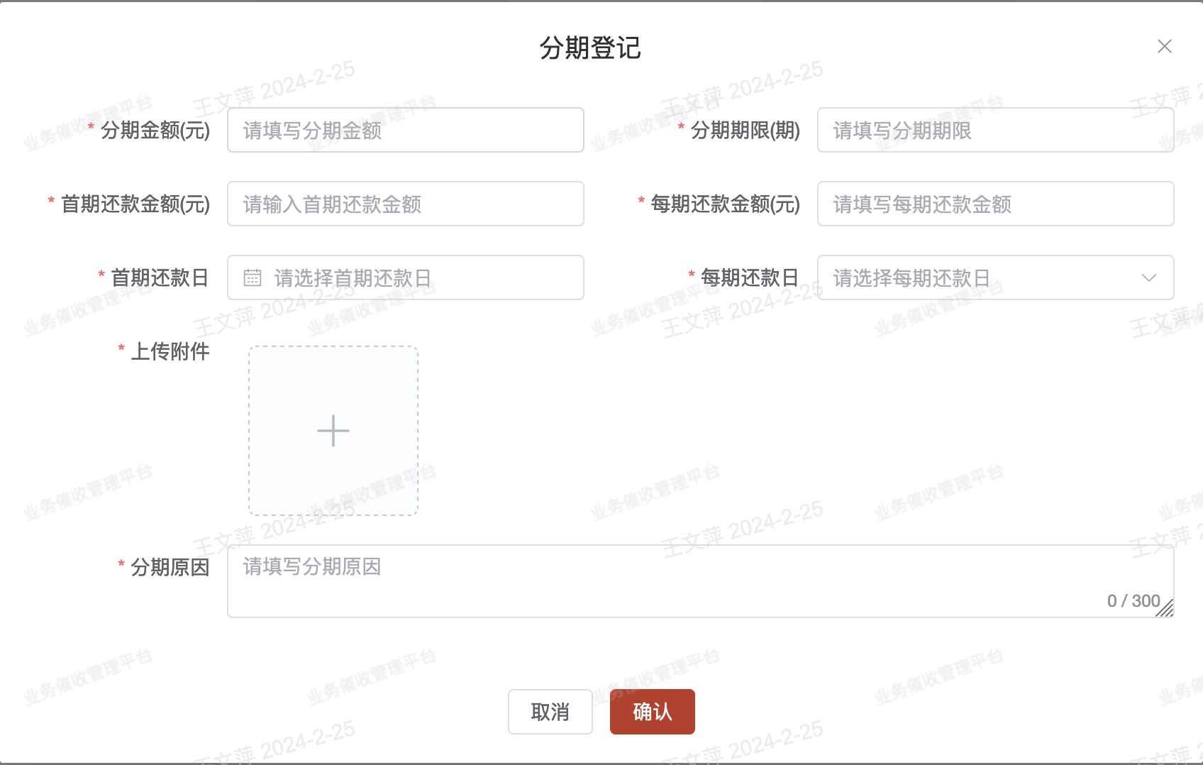 ii.支持跟进、完成、回款登记、减免登记、分期登记、展期登记操作;