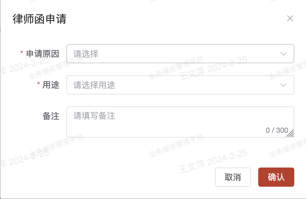 g)律师函:律师函情况与批量律师函申请功能一致,只是针对单条数据做操作,具体参考3.1.2-7 律师函申请部分;