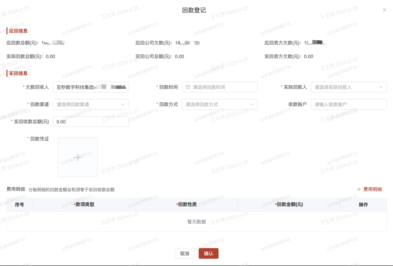 iii.回款记录:该任务的手工登记、二维码回款记录展示,支持导出;