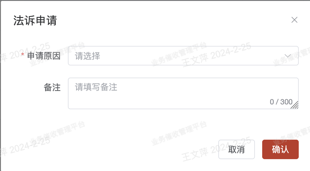f)法诉情况:法诉情况与批量法诉功能一致,只是针对单条数据做操作,具体参考3.1.2-7 法诉申请部分;