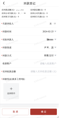 f)回款:对该任务手工进行回款登记;登记后对回收款项自动进行拆分,优先充公司欠款、资方欠款,多余的充入预收款;