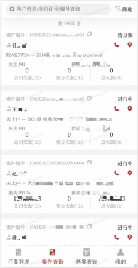 a)展示本人所处小组需要跟进的催收任务;点击卡片可进入任务详情;
