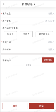 xi.支持添加关系人、电话、地址信息;