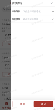 c)高级筛选:支持案件等级、居住地址进行检索;