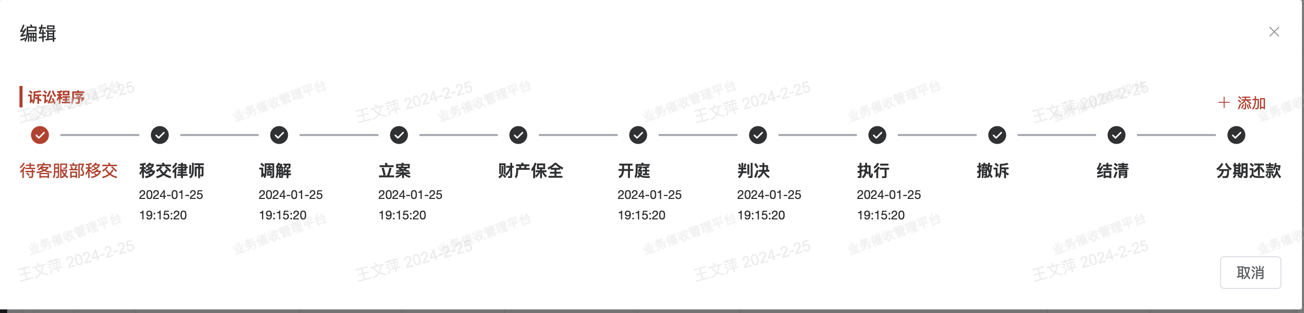 d)诉讼程序:根据案件实际程序走向维护案件程序信息;